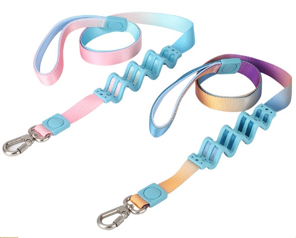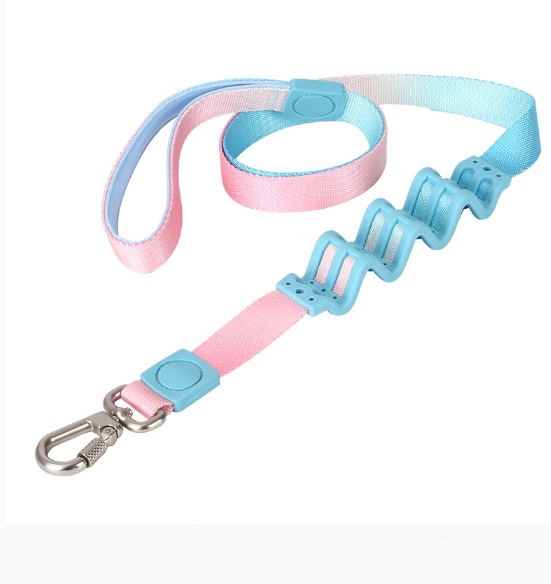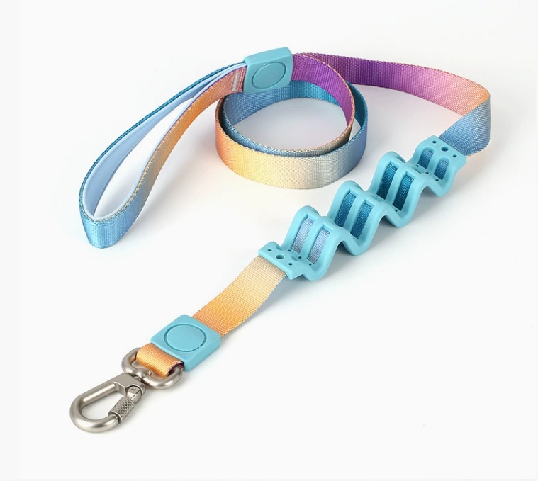 This dog leash features a distinctive W-shape design on a durable polyester strap, developed to reduce leash shake and absorb sudden pulling during walks. The construction provides better control for handlers and a smoother experience for pets—ideal for active small to medium-sized dogs.